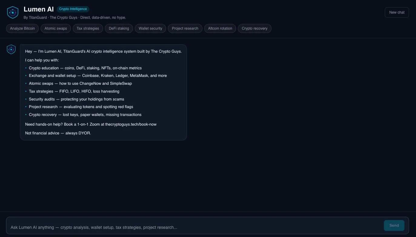 Lumen AI lives in your TitanGuard dashboard. No separate login.